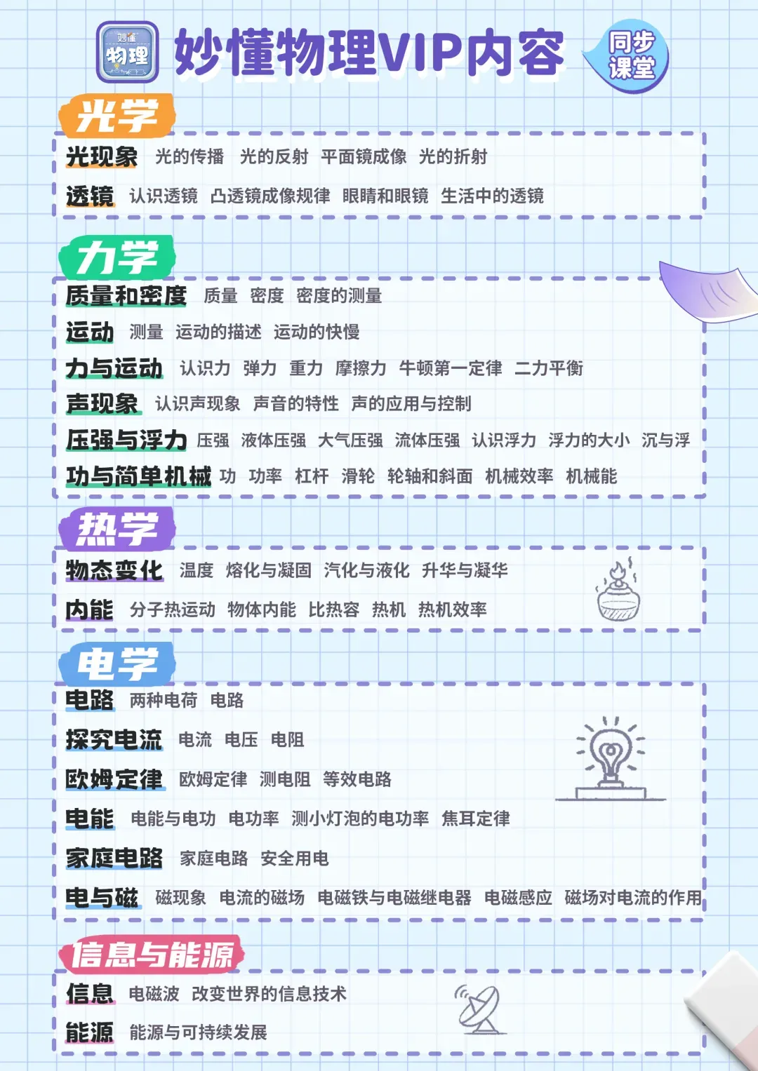 下面这个是“妙懂物理”和教材同步的内容大纲。