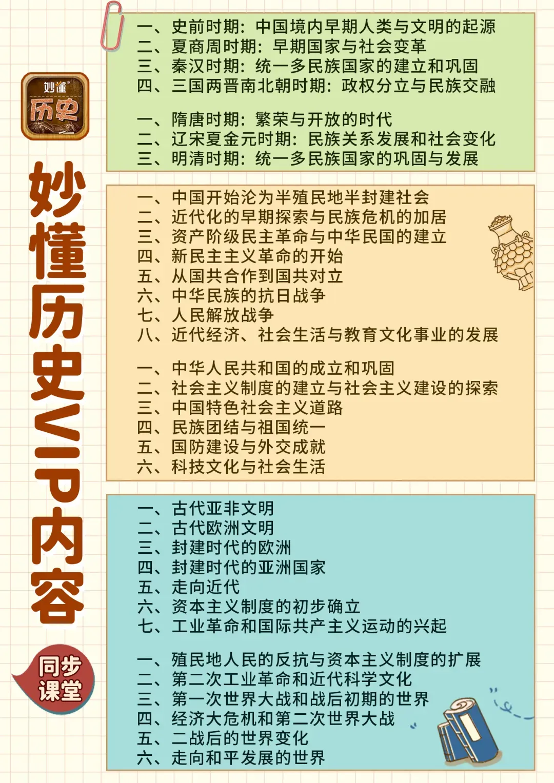 下面这个是“妙懂历史”和教材同步的内容大纲。