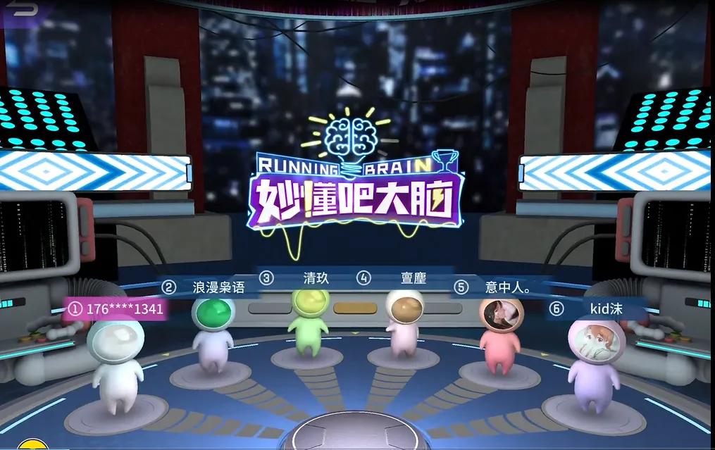像电视上那种答题节目,3D场景,元宇宙答题,竞技氛围热烈,考验孩子的反应能力、记忆力和知识运用能力。