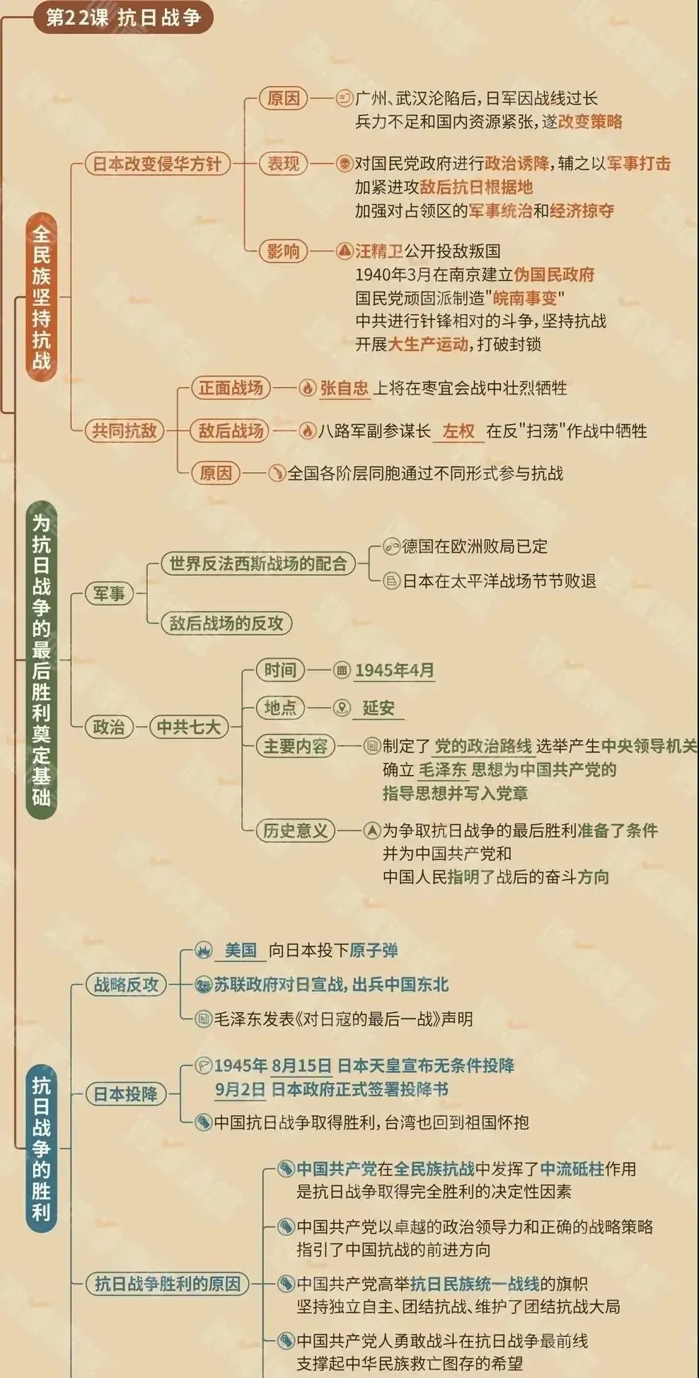 还有一个特别棒的导图记忆,边考察记忆边培养历史全局观。历史事件的前因后果,事件与事件、人物与朝代等等各种错综复杂的关系,梳理的特别清晰、精准!而这些都是孩子学历史的难点、重点!