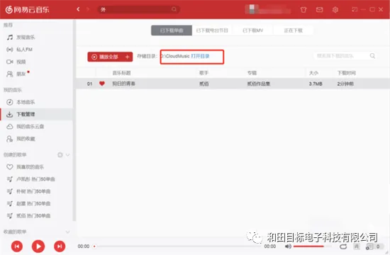 4、在页面的偏上方位置会有指示歌曲的“下载目录”,点击“打开目录”,可以看到歌曲下载在电脑中的位置;