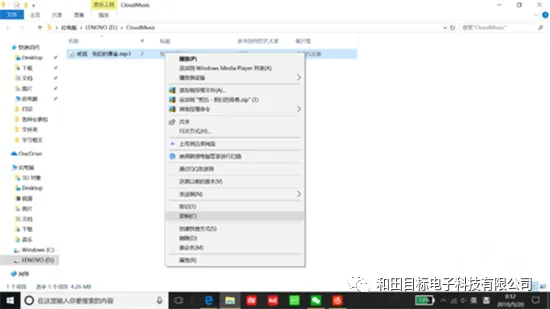 5、此时在歌曲所在的目录看到了歌曲,鼠标右键单击对应的歌曲,然后用鼠标左键单击选择弹出的小菜单中的“复制”,之后粘贴到U盘中就可以了。