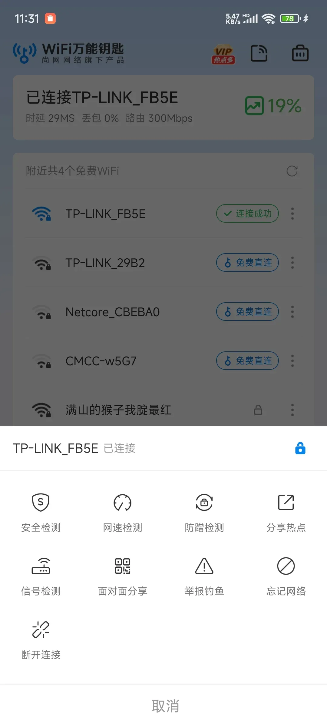 连接前如果不放心,怕是钓鱼wife,可以检测一下是否安全!软件这边也给大家精简了,基本没有留什么臃肿功能,也比较省手机内存,有需求的可别错过了哦~