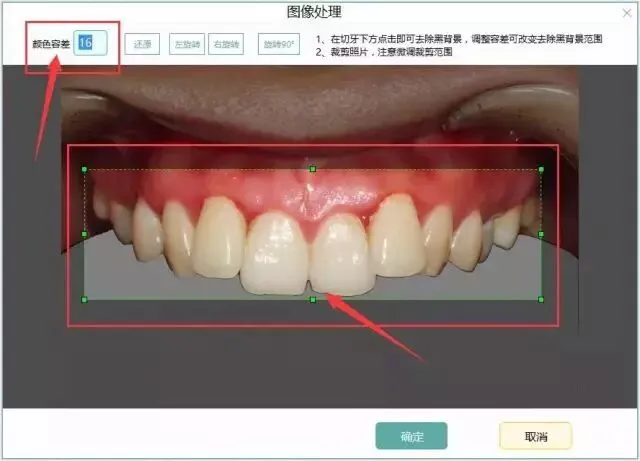 (口内照中,系统自动出现牙齿裁剪框,