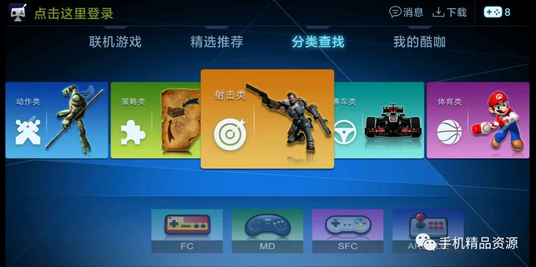 软件提供了格斗类、动作类、策略类、射击类、赛车类、体育类、益智类、角色扮演类等共计八个类型的游戏,所有游戏均下载后就可以畅玩,无需付费,也不用登录任何账号。