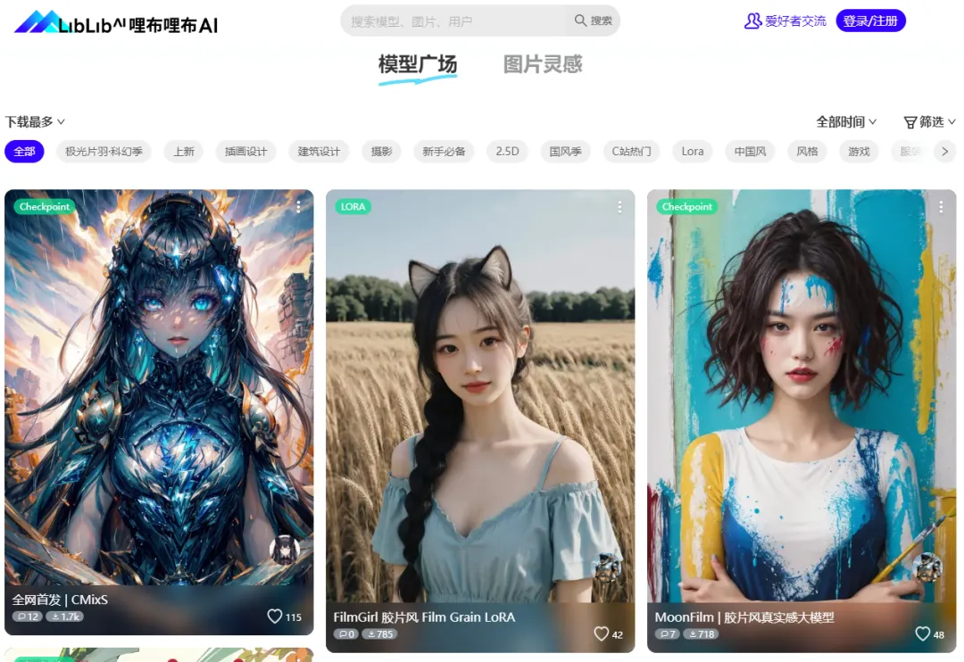 国内的LibLib AI是个好用的AI绘画模型网站,可以直接下载各种本地模型,方便快捷。