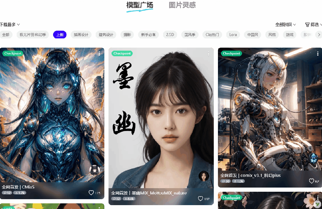 虽出生在国内,但是其模型的丰富度相比C站也是毫不逊色的
