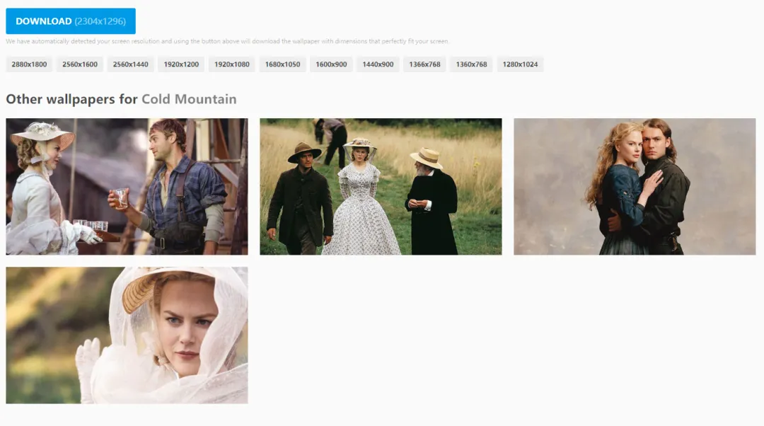 网站提供的基本都是高清、无码且无文字的海报,看起来非常舒适。点一下就能下载超高分辨率的图片