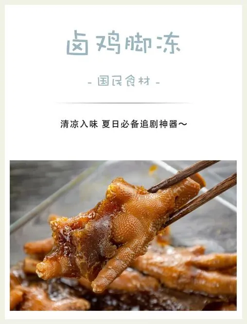 Q弹软糯,吃起来像是果冻一样,但是又入口即化,吃在嘴巴里凉凉的,卤味十足!吃鸡皮冻虽然不能补充胶原蛋白,但是Q弹的口感,爽口的滋味,也足以让人一试难忘!一边啃一边追剧,再整上一听可乐,这个夏天不要太舒适咯~