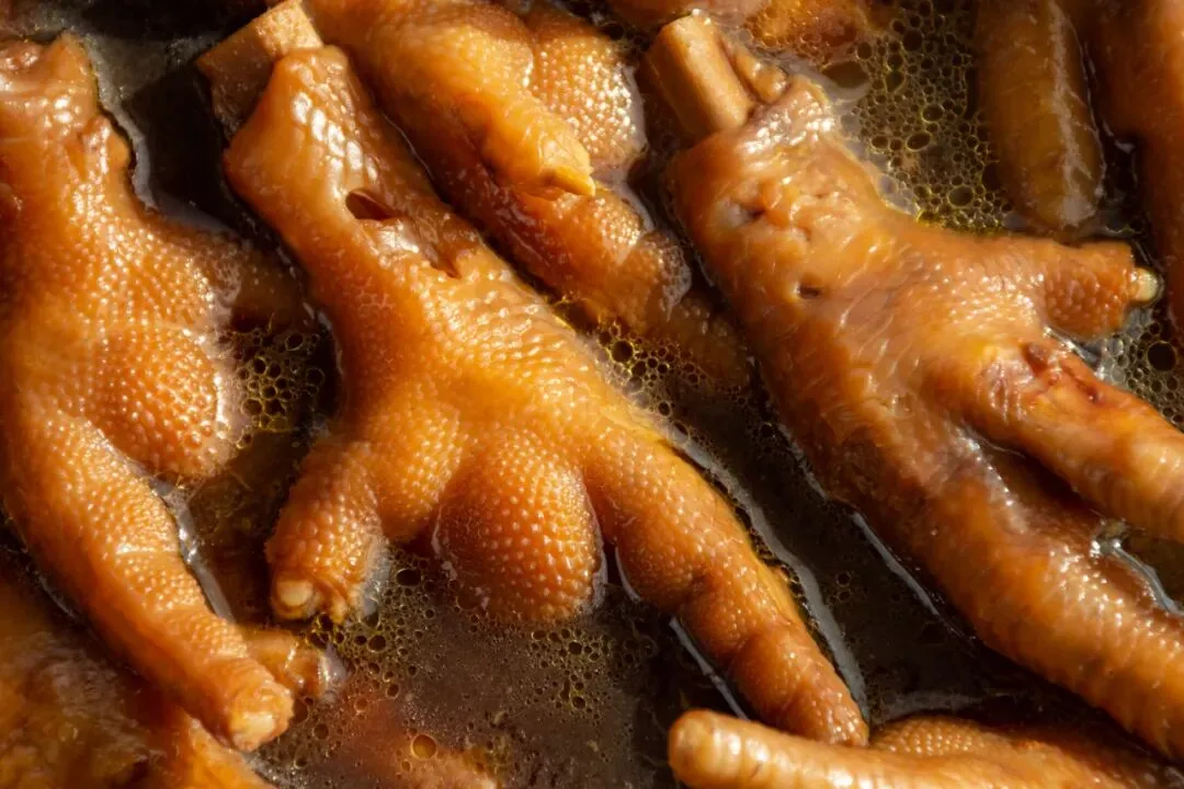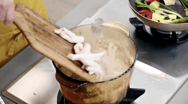 将汆烫过的鸡脚捞出,放入卤水锅中,开小火卤30分钟。