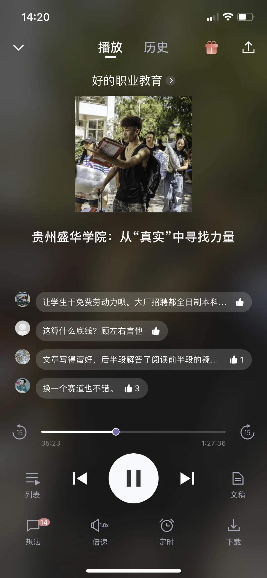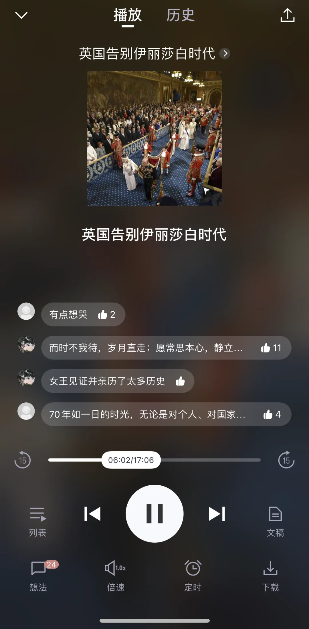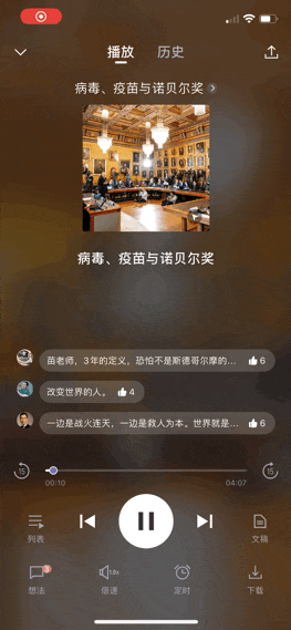 如果是听到了哪段感兴趣的内容,还可以去看音频的纸稿版。