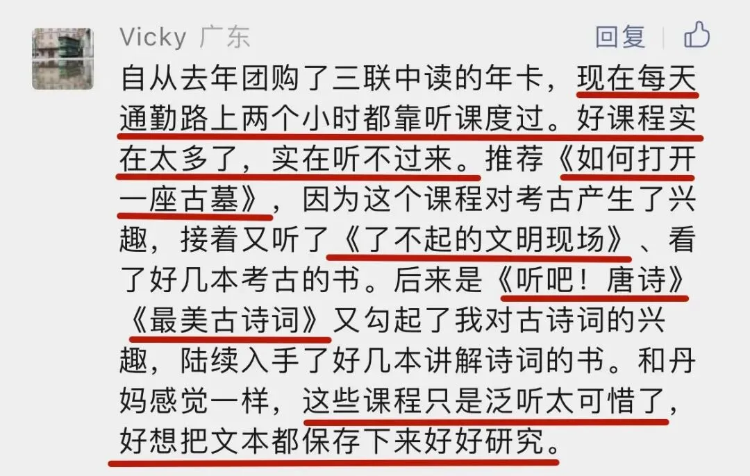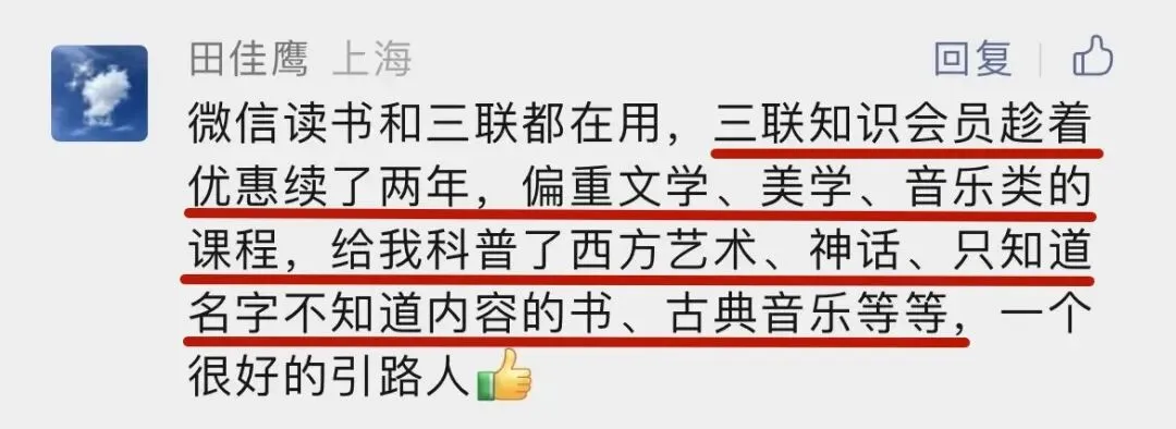 相对于专注于财经、职场的其它知识付费平台,三联中读的落点是完全不同的👇