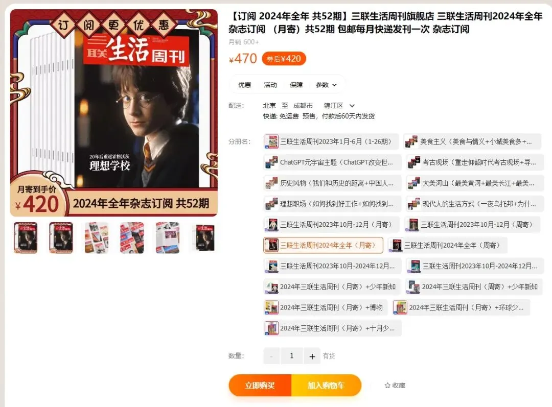 从数字刊会员来说,双11官方三联纸质杂志的低价也要420元。现在这笔钱可以省下了。