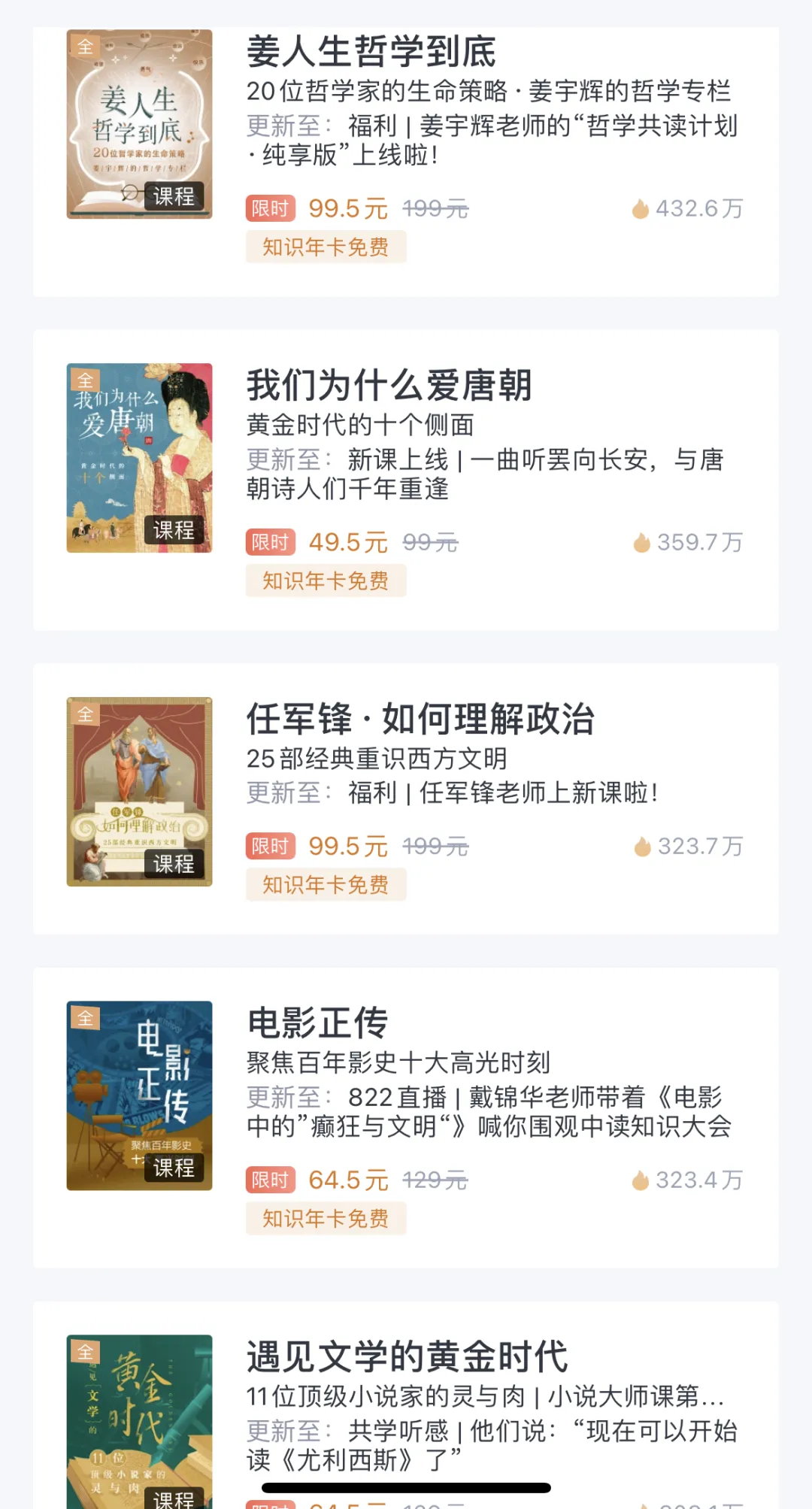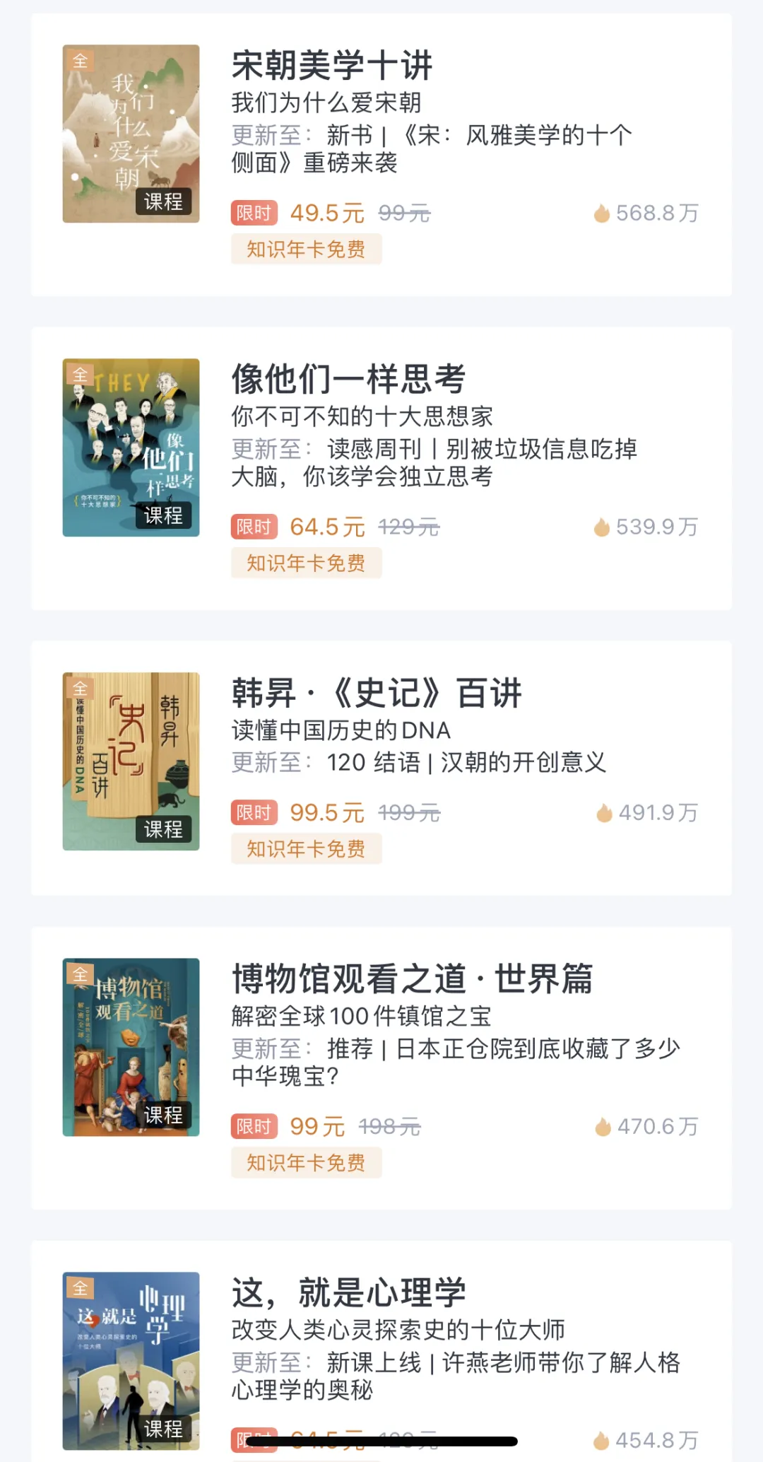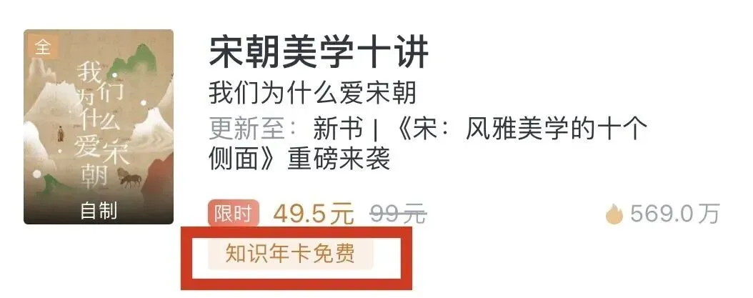 从知识会员来说,其实前年我就看中了他们家两个课程,《宋朝美学十讲》和侯会老师的《中国文学经典100讲》。