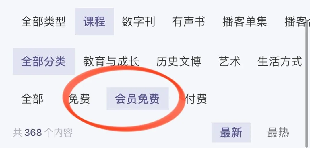 ↑ 知识会员可以畅听“免费”和“会员免费”中的课程