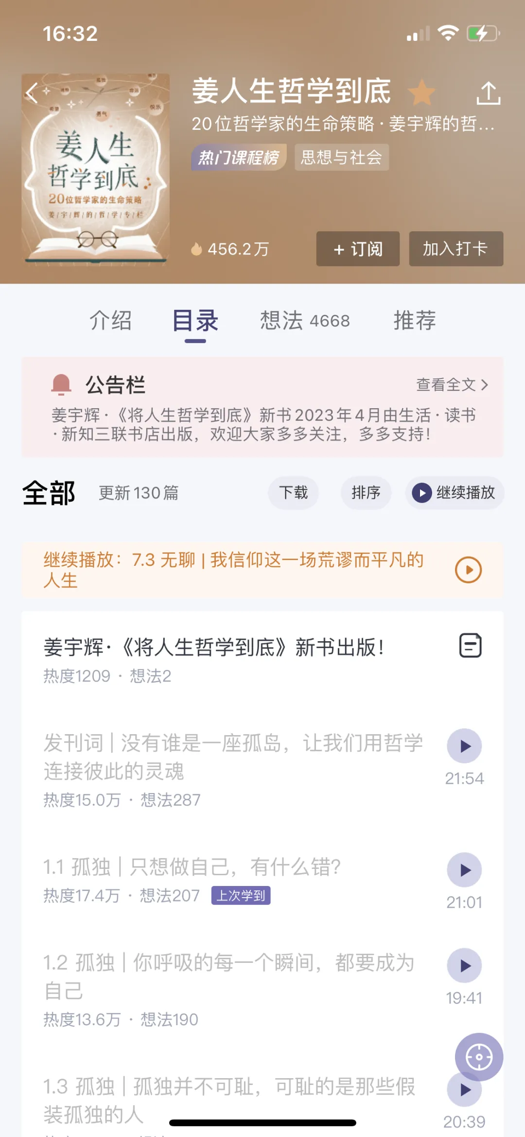 👉 哲学板块,强烈推荐《姜人生哲学进行到底》,姜宇辉老师是华东师范大学哲学系,最受欢迎的教授之一。如果要概括他的哲学课,夸张点说,就是“让哲学之光落入了民间”,太接地气了!