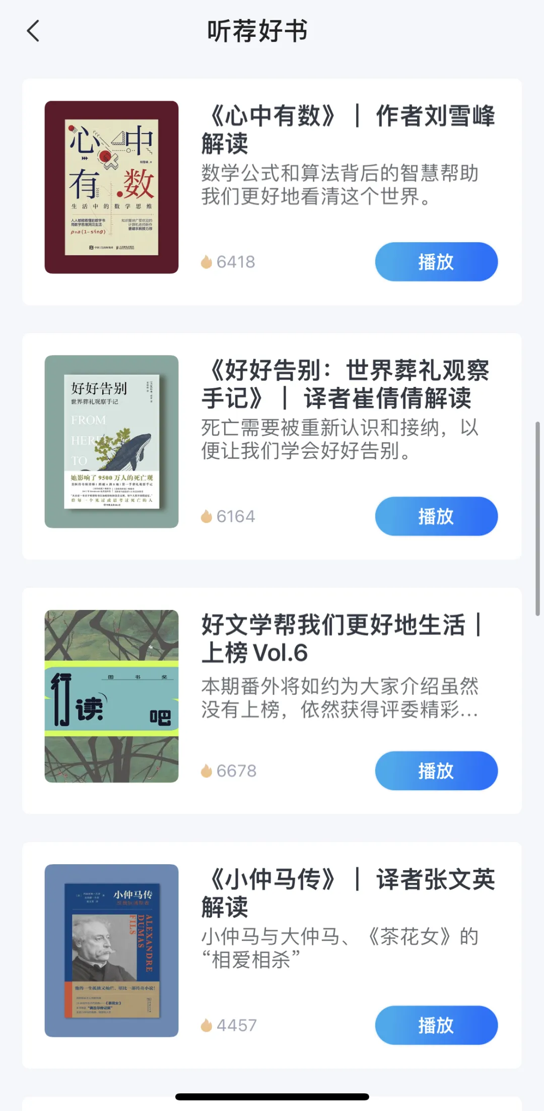 特别是对于一些自己不熟悉的知识领域,先用“听”的方式来培养兴趣,之后再去照着书单阅读,是一种特别好的学习方法。