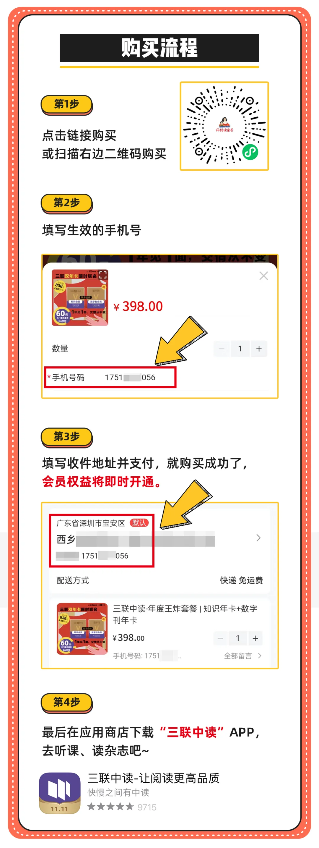 大家后续可以用于购买除三联中读App会员外的任意商品中(控价,三联不允许使用),优惠券将于购买7天后,自动发放到大家的账户中。