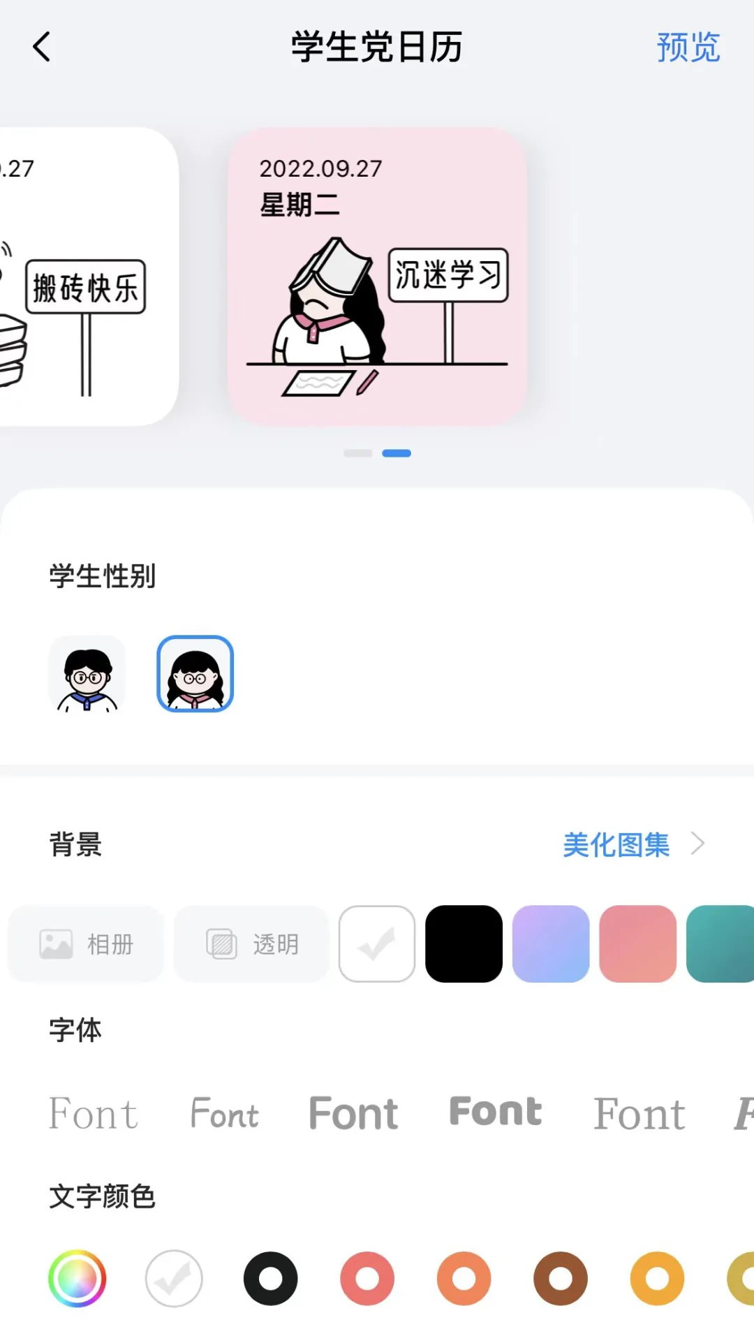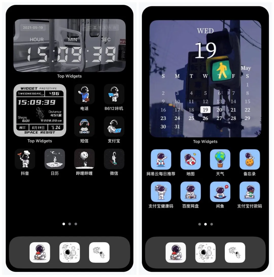 各种小组件都有大、中、小号可选,并且可以自定义背景、字体、文字颜色。