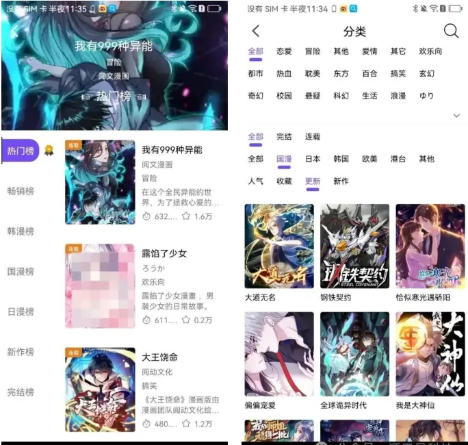软件分类齐全,包括:热血、机战、运动、推理、冒险、搞笑、战争、神魔、忍者、竞技、悬疑、社会、恋爱、宠物、吸血、萝莉、后宫、御姐、霸总…,可以说是应用尽有,满足你的所有看漫画的偏好。