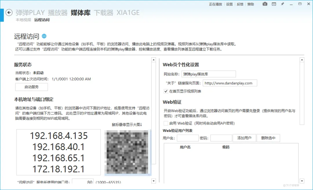 远程访问功能:通过开启服务后,你可以在其它设备(手机、平板、电视)上观看电脑上的视频,相当于一个投屏播放功能吧。