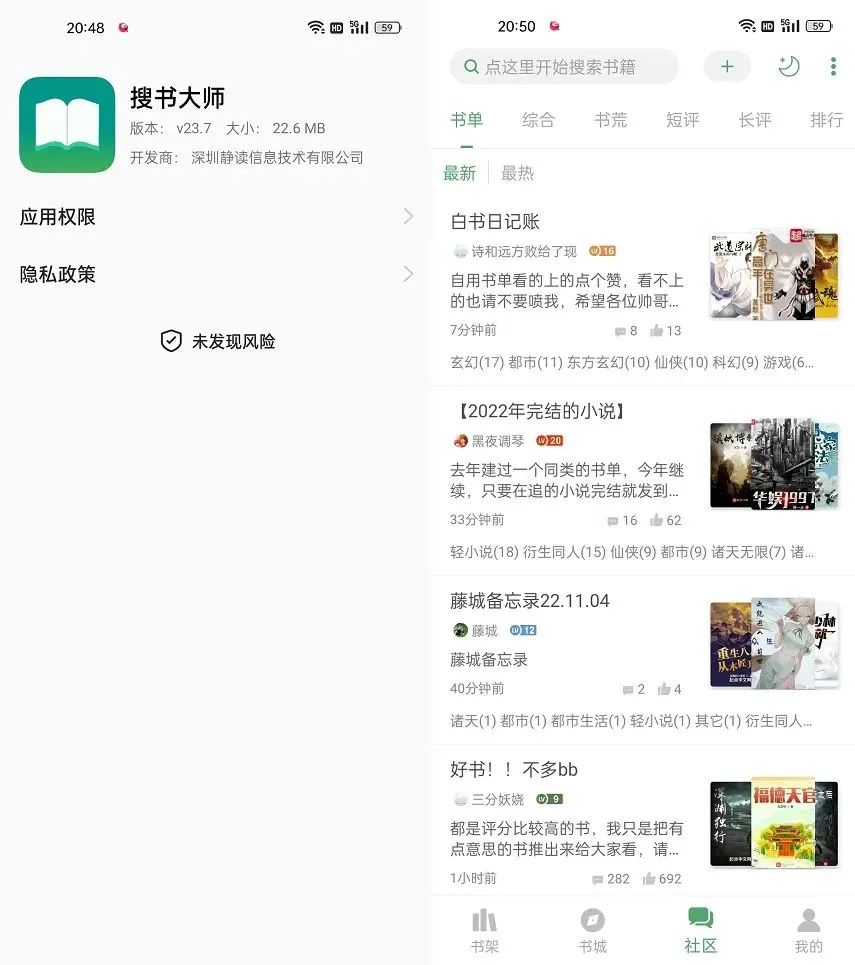 5、搜书大师APP中的小说评价大都很真实,不像一些知名小说平台的评论,存在大量水军刷好评现象,在这里都是网友分享的真实看法,骂也好,夸也罢,不乱删帖子评论,对于书友来说,参考价值相对更好。