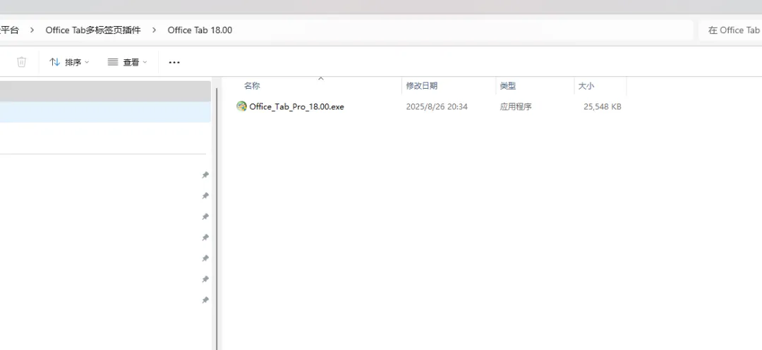 2.打开刚刚解压的文件夹,鼠标右键点击“Office_Tab_Pro_18.00.exe”选择“以管理员身份运行