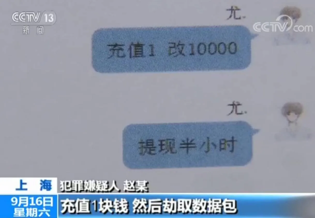 犯罪嫌疑人赵某:“那个漏洞是第三方支付跳转的漏洞,充值1块钱,然后劫取数据包,把那个1块钱到账金额改成了1万元,然后就提现到自己的银行卡里。