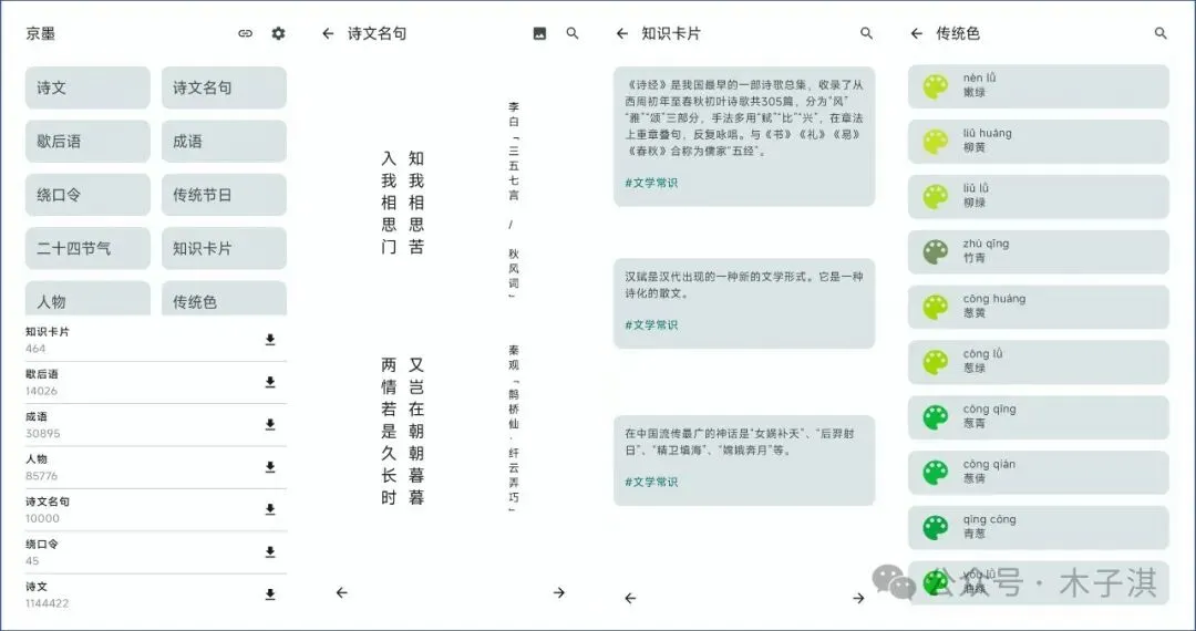 京墨是一个极简设计的传统文化和文学学习软件;软件支持安卓。