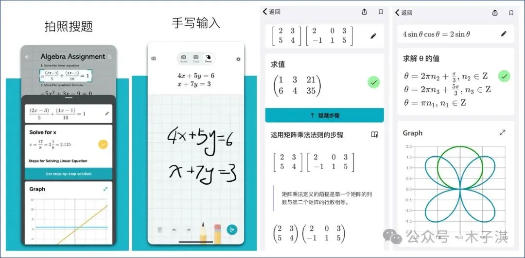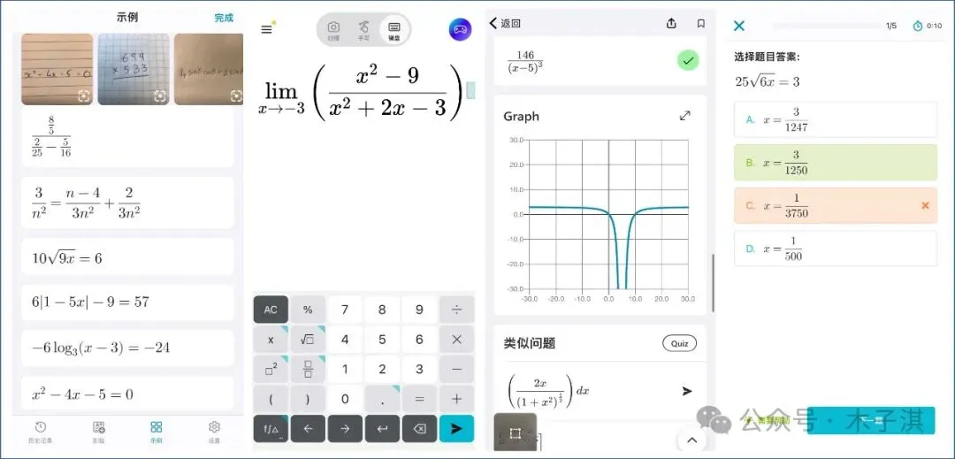它对大学生也是非常适用,包括:矩阵、极限、导数、均值、排列组合、高级代数、微积分等,支持详细的分步说明和图形计算器,支持绘制线性和非线性函数图表。