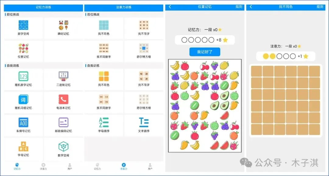 它的每个训练都是上手容易,打开就知道怎么操作,可以帮助你训练记忆力和注意力,让自己变得更加优秀。