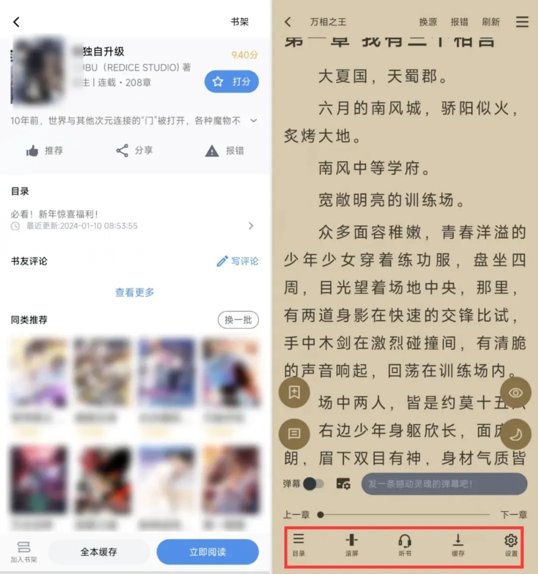 漫画和小说都是支持缓存的,不过目前不支持单章节缓存,只支持全本缓存的模式。