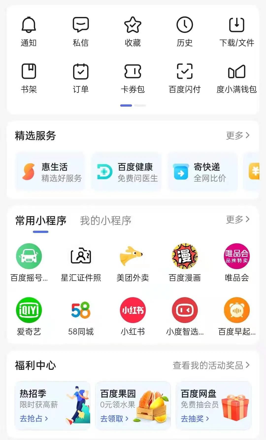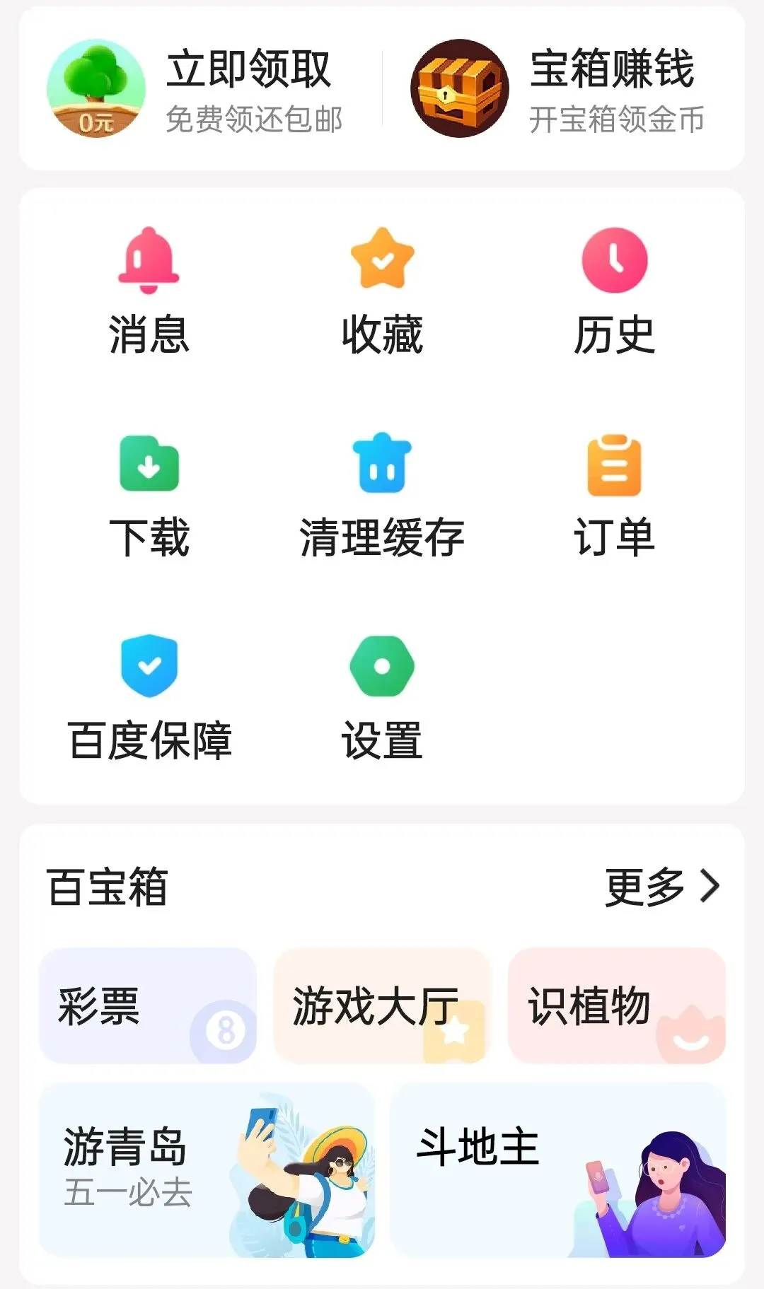 另外,百度大字版还取消了购物、金融、网盘等功能,只保留下面这些。