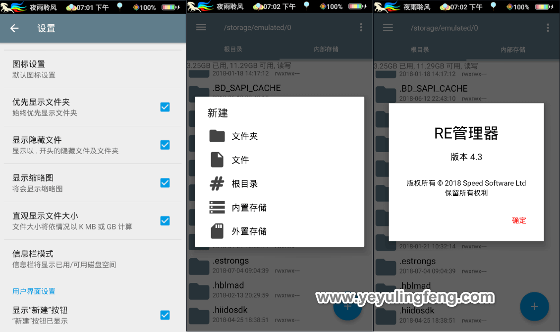 前几天站内发布了个ES文件浏览器去广告优化版的文章,老夜在文章中并与RE管理器做了比较,然后就有小伙伴评论区问了有没有RE管理器的资源,作为玩机党都折腾过的安卓应用,这里也不藏着腋着直接分享出来了!RE管理器是一款高权限文件管理器,获取Root权限后对系统文件进行操作,可以新建文件夹,查看编辑文件,软件安装,支持查看和解压RAR、zip档案等。