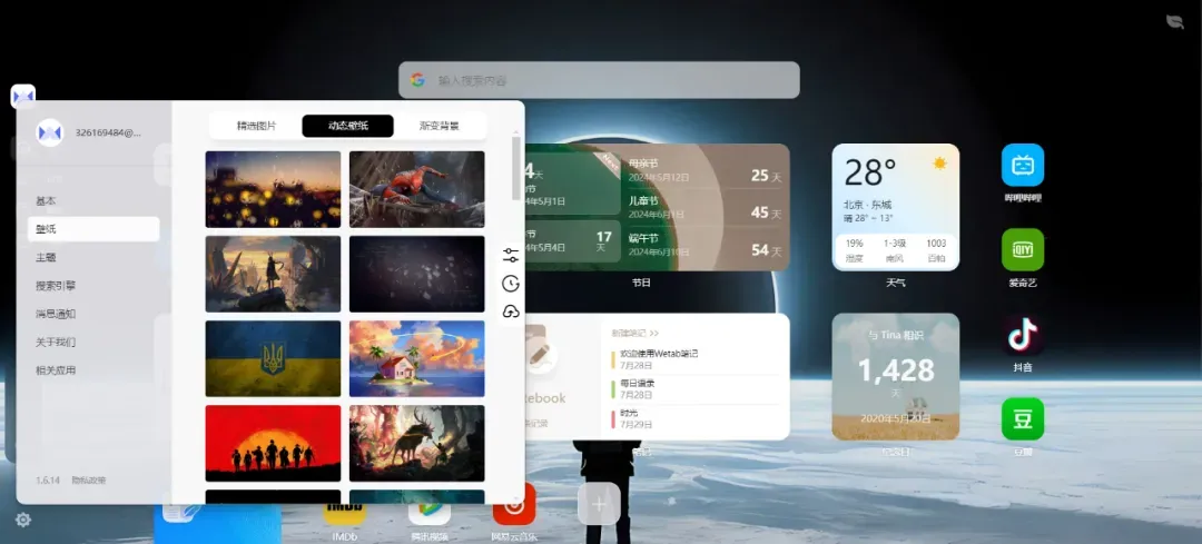 Wetab提供了大量的免版权静态壁纸、动态壁纸,点击就能直接切换,每张壁纸都支持一键下载。
