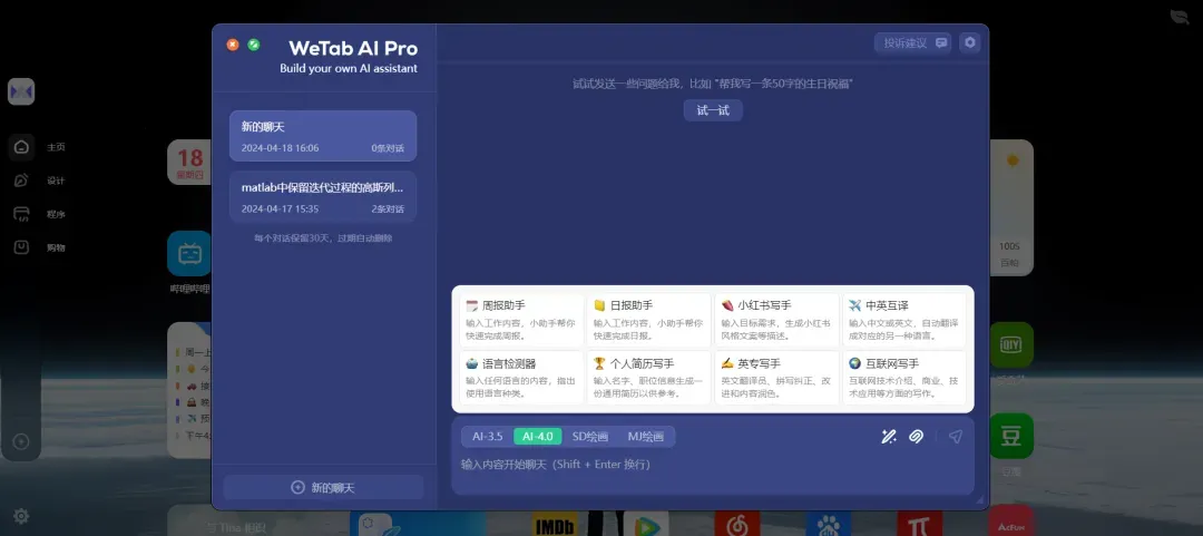 WeTab AI 4.0对话界面
