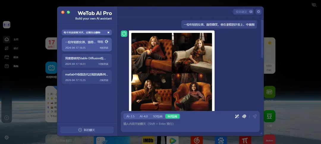WeTab AI小组件▶ WeTab AI(GPT聊天+SD/MJ绘画)