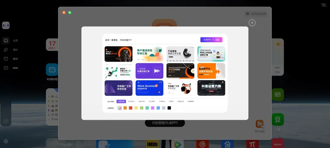 确定大纲后,AI就会根据你选中的模板自动设计排版,智能生成PPT。
