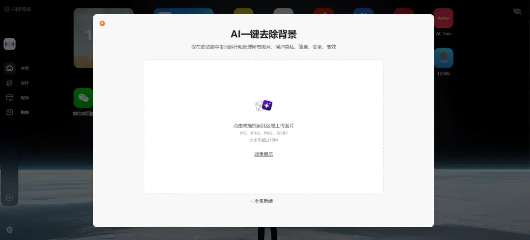 只需要把需要处理的图片上传至窗口中,等待AI完成自动抠图就行了。