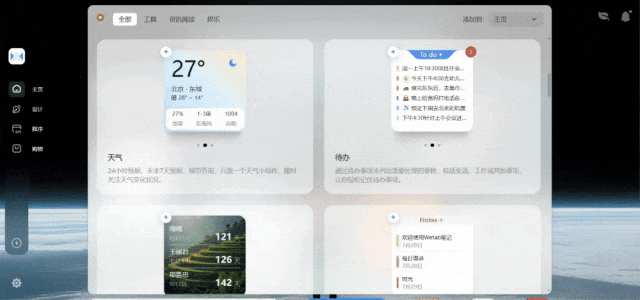 更换壁纸如果你有时候更喜欢纯净的主页,还可以在右上角一键切换主界面展示效果,享受宁静的片刻。