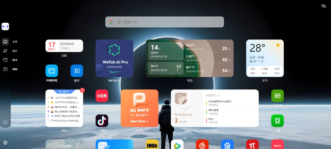 WeTab作为一款国产新标签页插件,在颜值、功能上都带来了令人意想不到的体验。