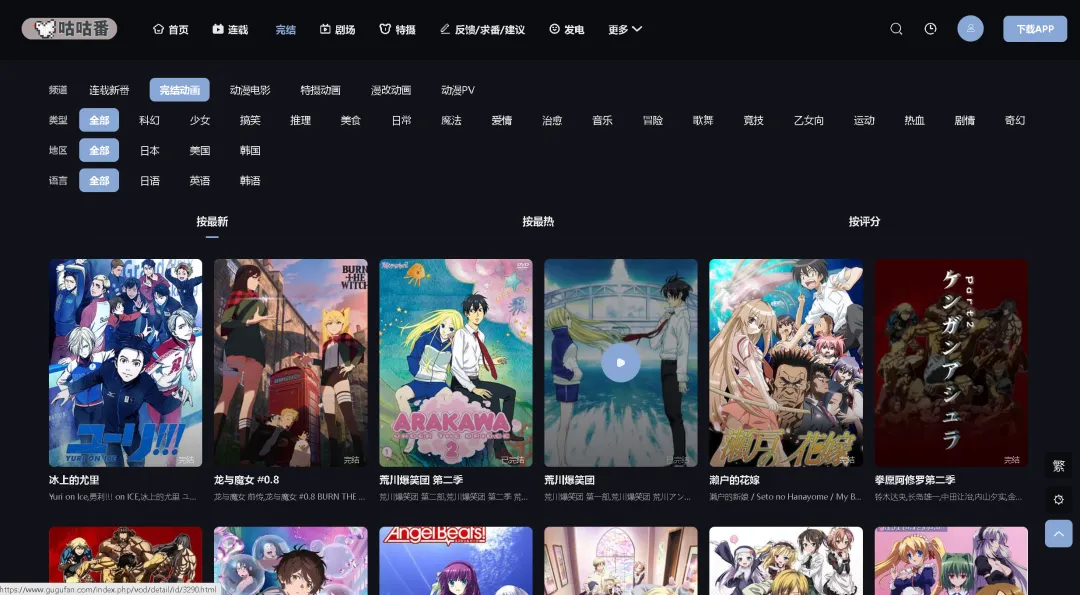 这个网站和咕咕番的界面很像,也是提供了安卓和IOS的APP,使用起来也是不错,很多日漫资源,也是相当可以,十分推荐