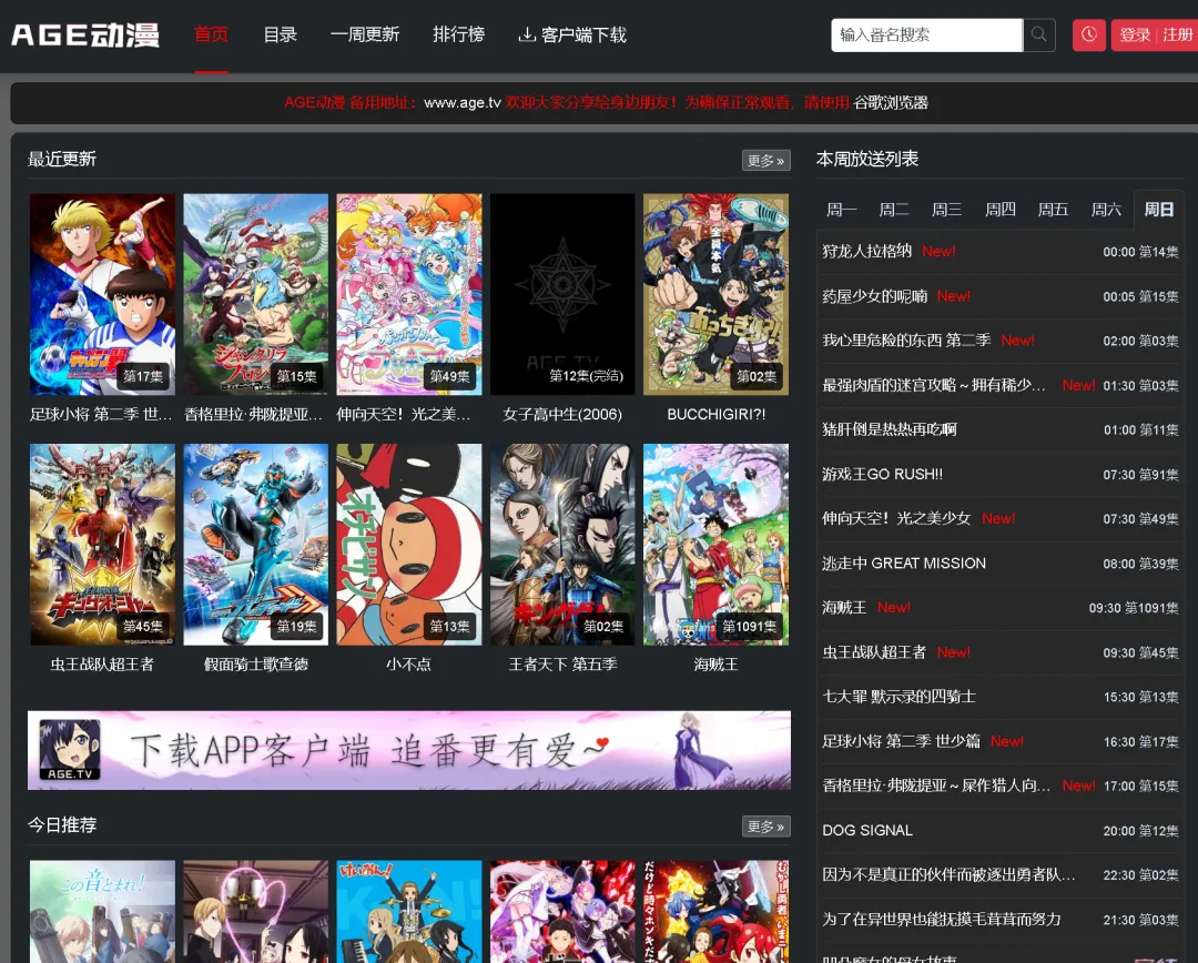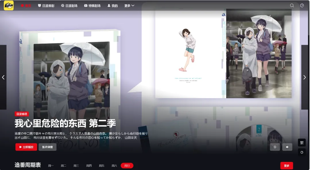 这个网站只提供了安卓的APP,可以看国漫,日漫,有周表,但是没有分类,只能通过搜索和推荐来查看你喜欢的番剧,分类比较少,但观看速度还是不错的~