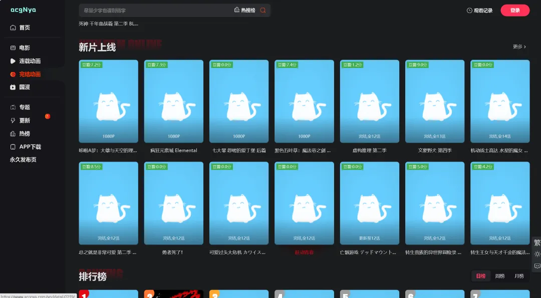 这个网站的特点就是很多动漫都是1080P起步,还有很多4看的,画质比较高,需要观看超清动漫的小伙伴可以使用这个网站来观看~