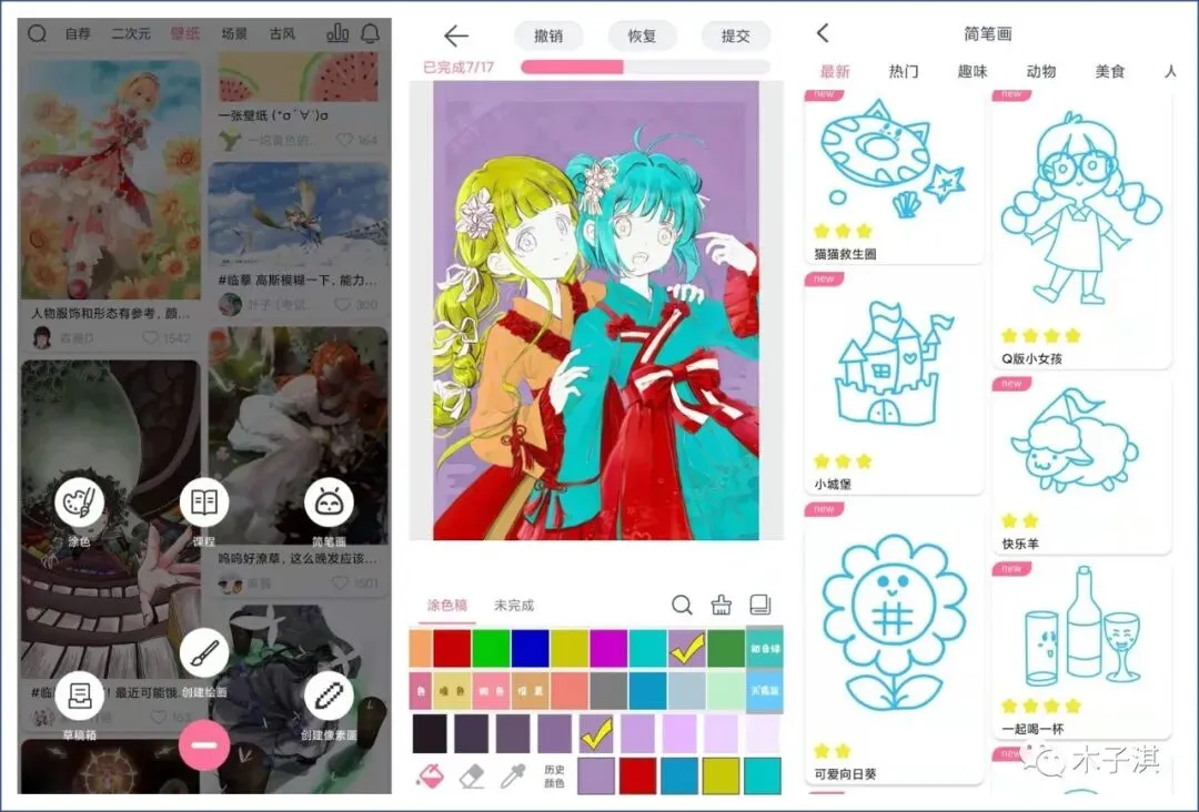 它不仅支持简笔画练习学习,还支持创建绘画、创建像素画、绘画课程、涂色等功能。
