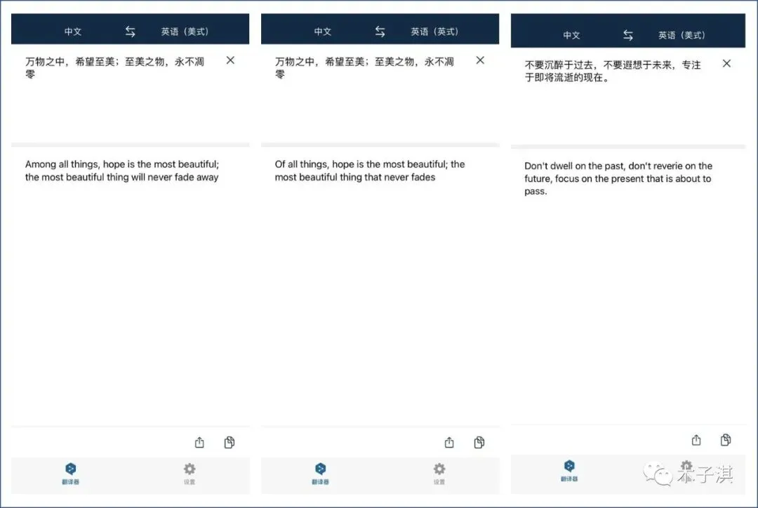 它的翻译速度非常快,翻译结果准确自然,你可以一键复制翻译结果。