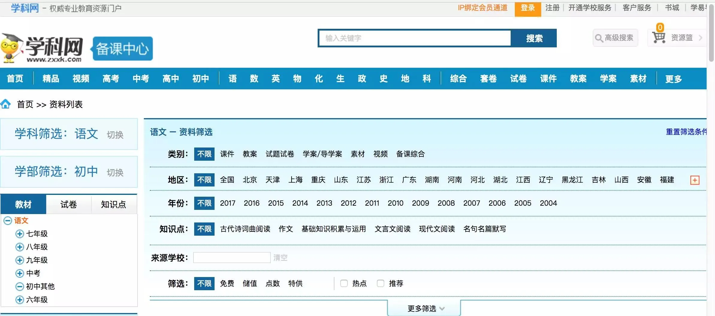 可以按照年级,地区,学科搜索。