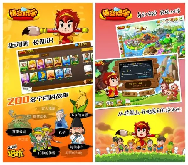 针对3-8岁学龄前及一年级儿童打造的识字软件。结合儿童熟悉的《西游记》经典场景,让儿童在游戏中快乐地认识汉字。