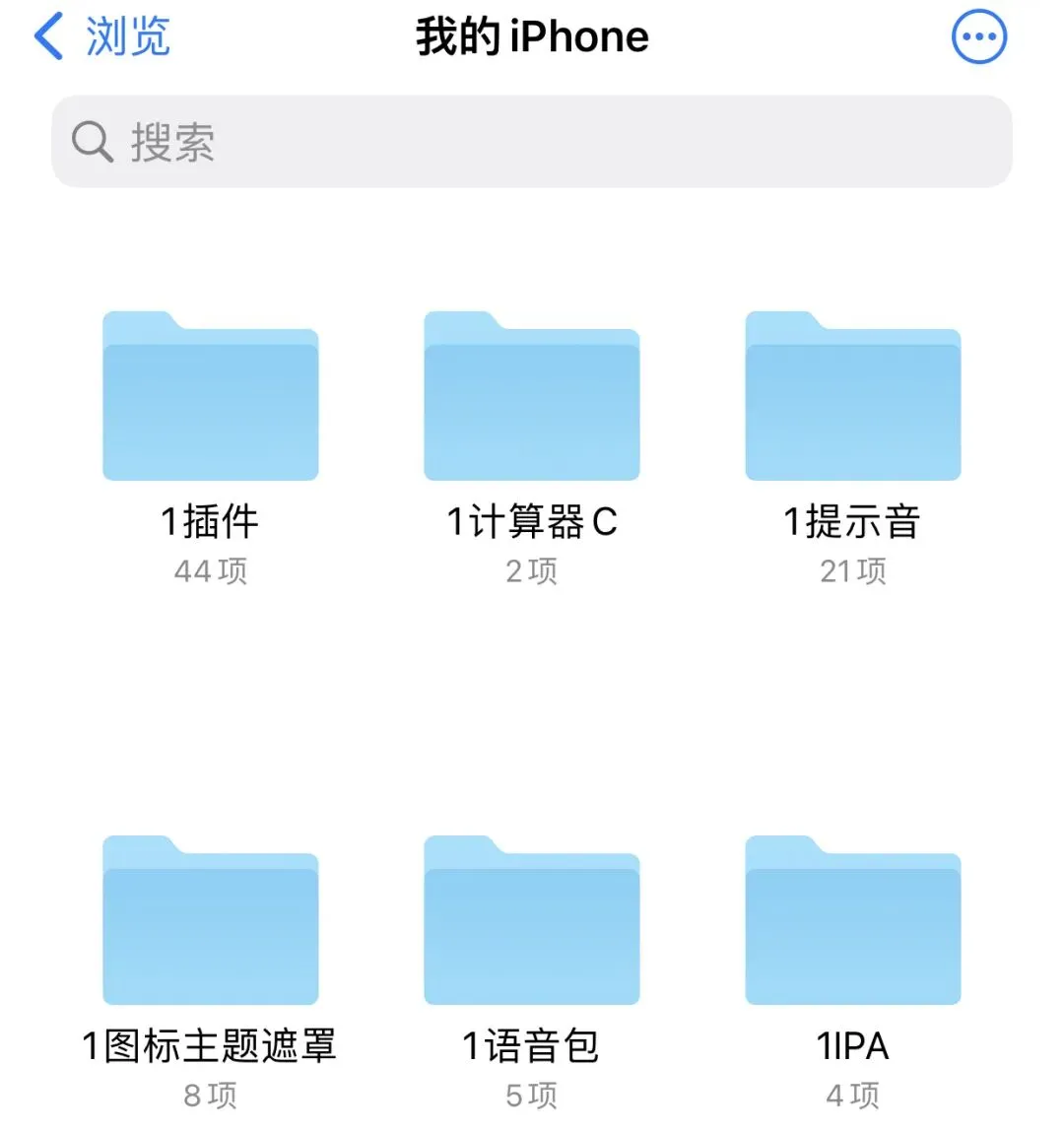 ❷新版“巨魔注入器”安装好后,其次你得去找要替换的新插件,一般在各种群里可找到,或其它地方提取deb/dylib,保存到自带“文件”App里面,最好保存在“我的iPhone ”下新建文件夹进行分类管理,名字前面加1就会显示在最顶层,方便调用。