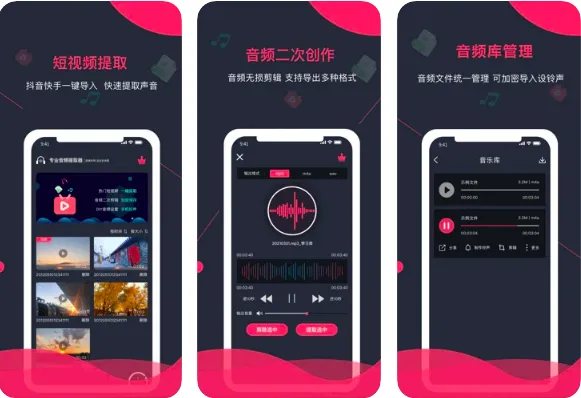 音频提取器 是一款视频转换成音频的软件,软件简单直接指出转换为mp3 m4a wav格式,同时专家还可以对已转换的音频文件进行编辑截取部分音频,或其他调整,软件目前无广告无内购,还是非常不错的。